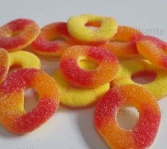 acidulante: ácido cítrico, aromas; Cores: cores, E110, E129