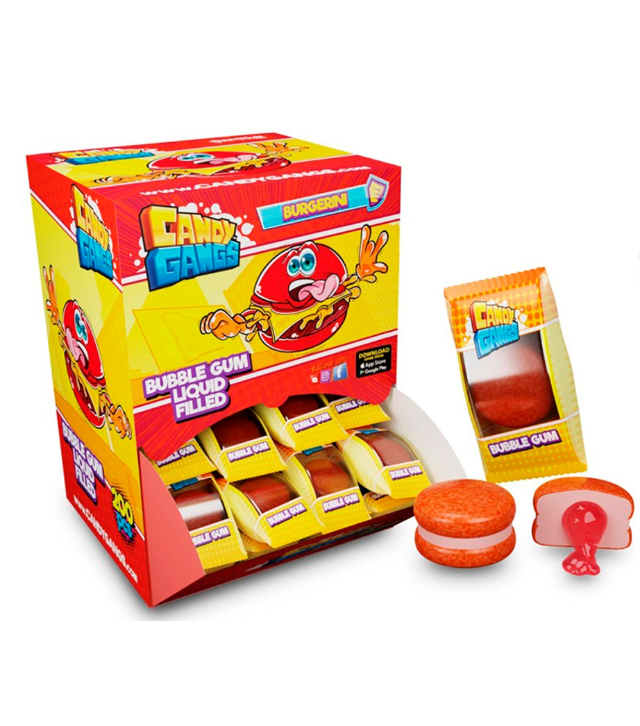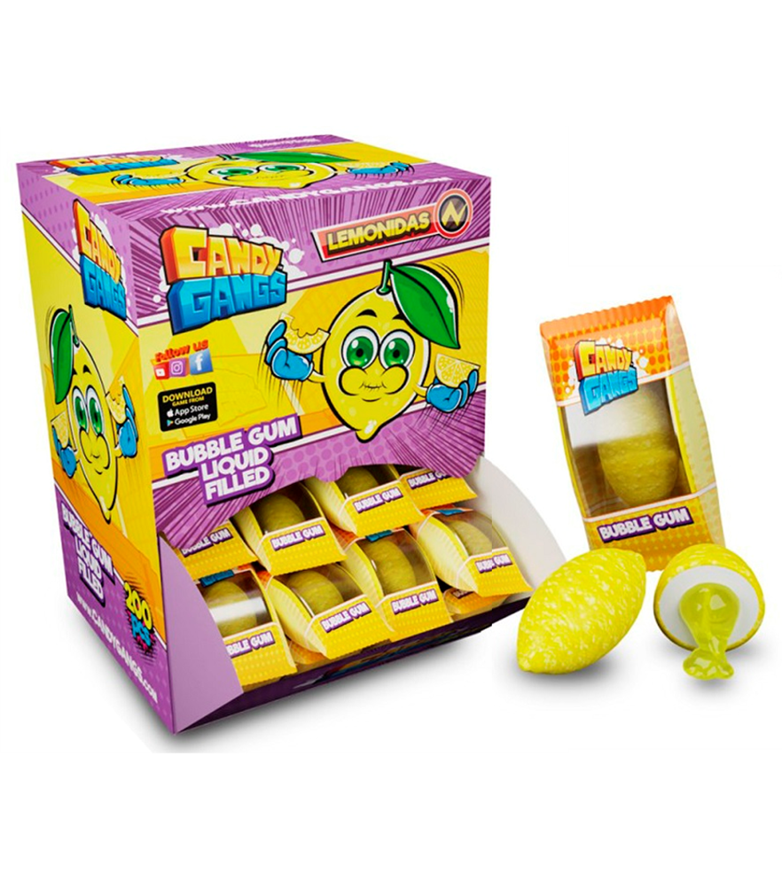 Pastilha elástica sem açúcar com recheio líquido - contém edulcorantes. Sabor a